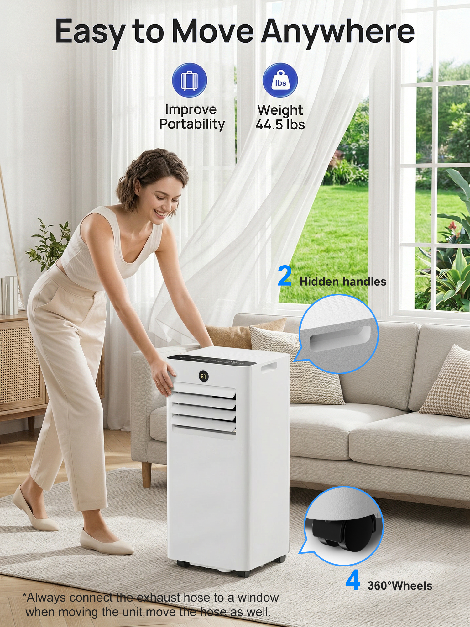 - Intuitive Operation & Effortless Portability: Comes with a clear LED digital control panel and a full-function remote control, allowing you to easily adjust modes, temperatures, fan speeds and settings from anywhere in the room. It features a 24-hour programmable timer for auto-on/auto-off, a handy sleep mode and a child lock function for added convenience. Designed with smooth rolling casters and a built-in handle, the compact unit can be effortlessly moved between rooms, meeting your multi-space cooling demands.