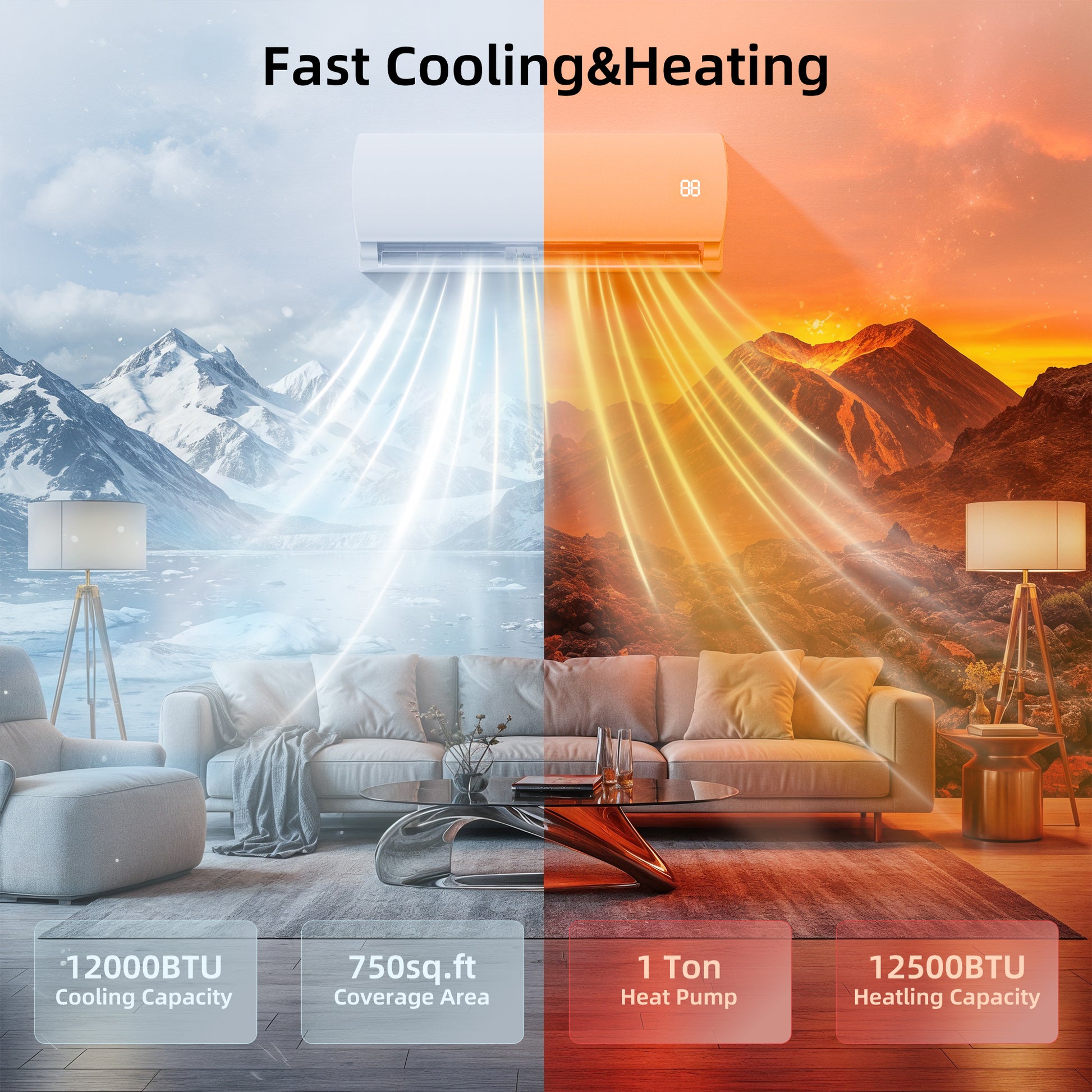 - Quick Cooler & Heater: Besides powerful capacity, you can also experience rapid cooling and heating with the 12000TBU mini split AC/heating system. The quick cooler and heater function allows you to reach your desired temperature without waiting for a long time. For staying comfortable and cozy quickly, you just need to turn on the small air conditioner in 30s for a cool room or in 60s for a heated room. Pre-charged with next-generation R32 refrigerant, your home gets the perfect balance: powerful cooling when you need it most in summer, and steady, comfortable heat throughout winter - all with reduced environmental impact.
