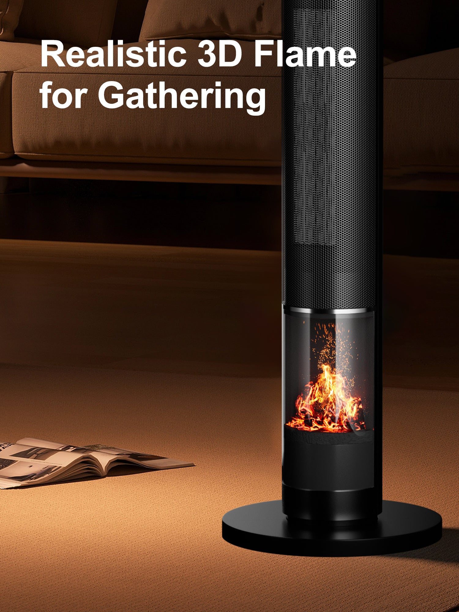 - Realistic Flames & Fast PTC Heat Experience the cozy ambiance of a 3D flame effect paired with rapid PTC ceramic heating. This dual-purpose electric fireplace heater delivers both visual comfort and powerful 1500W warmth for whole-room use